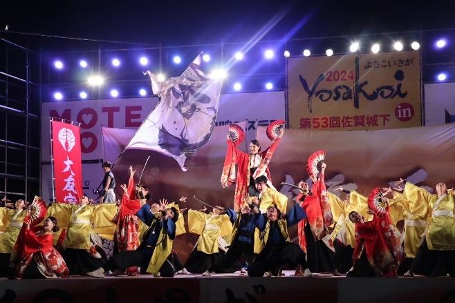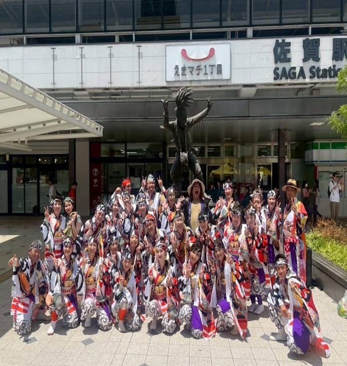 こんにちは!佐賀県佐賀市を拠点に活動しています、佐賀大学嵐舞です。第一回目から参加させていただいている呼子よさこい水光祭りに、今年も参加できることを大変嬉しく思います。嵐舞らしくエネルギーあふれる演舞をお届けできるよう精一杯頑張りますので、温かいご声援をよろしくお願いいたします!